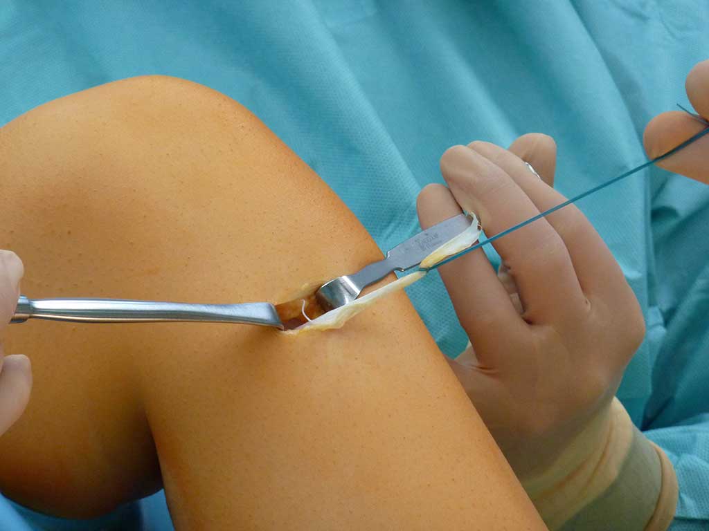 Am häufigsten wird in unserem Praxisalltag bei Patellaluxationen eine minimal invasive Bandersatzoperation empfohlen und mit exzellenten Langzeitergebnissen durchgeführt.